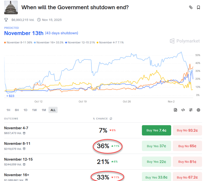 尽管短期远景(笔据Polymarket数据,11月11日前兑现的可能性仅为36%)仍不豁达,但政事风向的转动和经济代价的蕴蓄正在为问题的最终搞定创造条目。投资者应密切关注两党首连系面的进展以及温情派议员所推动的具体搞定决策,任何本色性进展齐可能马上提振市集心境,缓解短期经济下行风险。