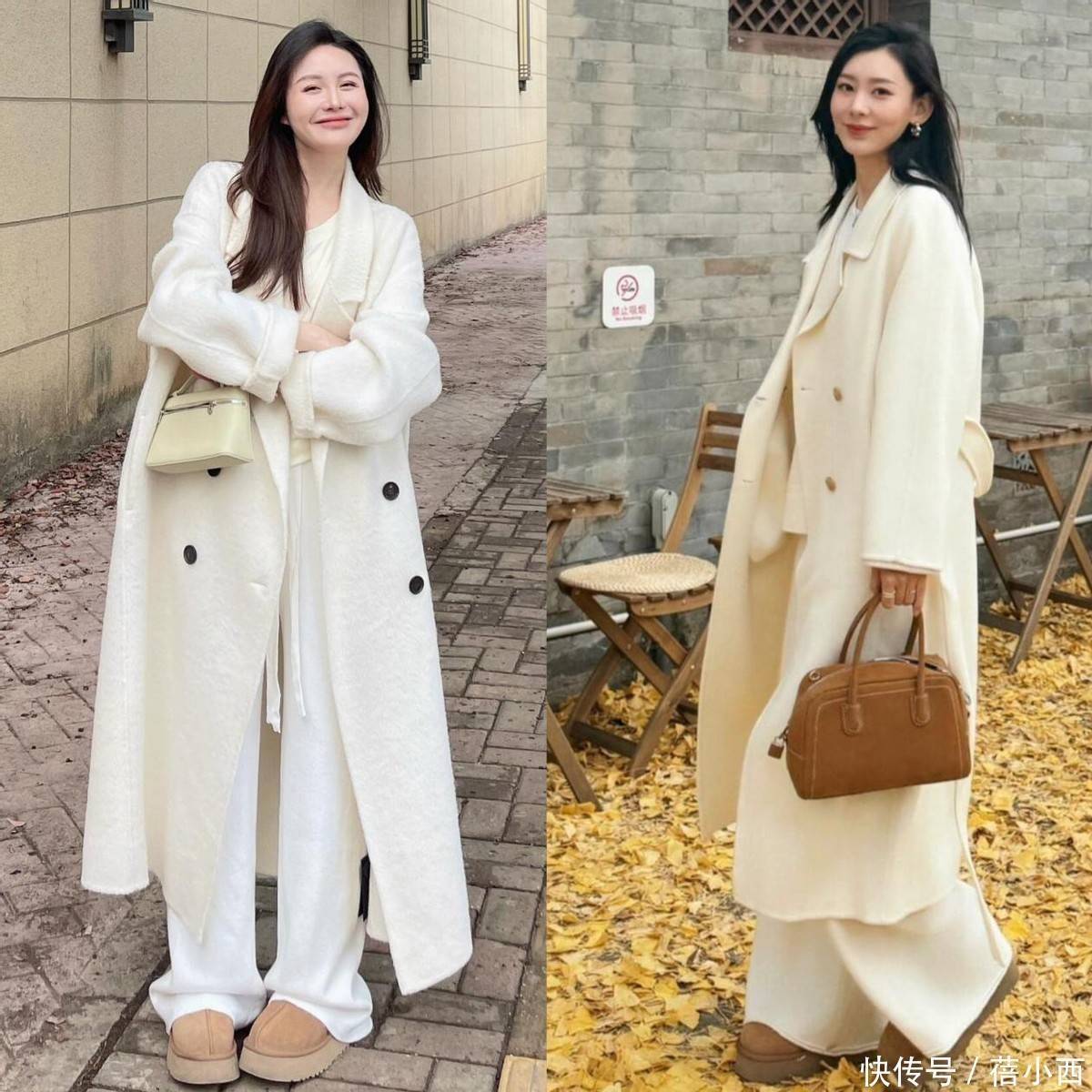 米白色大衣自带温煦滤镜,搭配白裤子更是将“从简即高等”的理念施展到极致。不同于深色大衣的镇静压迫,这套全白系组合像冬日里的一束柔光,干净通透又显气质,全身莫得花里胡梢的缱绻,自带氛围感,很适宜麇集穿。