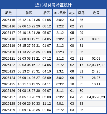 上期追思:25129期前区开奖号码为03、09、14、28、35,后区开奖号码为02、04。龙头为03,凤尾为35,012路比为2:1:2,连码未出。