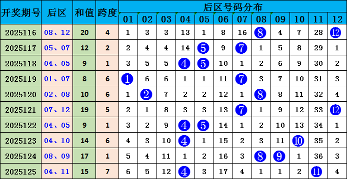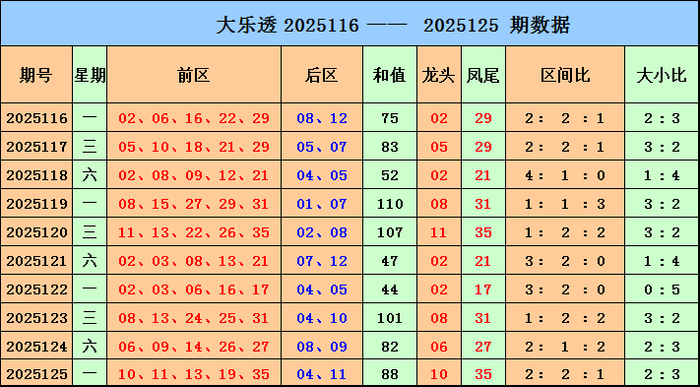 大乐透前区分析: