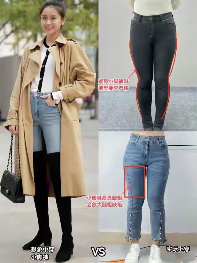 高个子女性或者是说梨形躯壳,咱们还可以径直遴荐烟管裤,烟管裤裤脚版型也相比大,和阔腿裤很接近,亦然能达到遮住下半身腿部瑕玷的成果