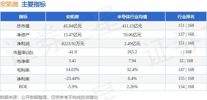 安凯微(688620)主买卖务:物联网智能硬件中枢SoC芯片的研发、接洽、终测和销售。 安凯微2025年三季报涌现,前三季度公司主营收入3.51亿元,同比下降5.22%;归母净利润-8223.92万元,同比下降267.46%;扣非净利润-8420.12万元,同比下降210.18%;其中2025年第三季度,公司单季度主营收入1.17亿元,同比下降9.36%;单季度归母净利润-3298.85万元,同比下降99.65%;单季度扣非净利润-3487.36万元,同比下降110.73%;欠债率14.61%,投资收益13.13万元,财务用度-1285.61万元,毛利率14.03%。